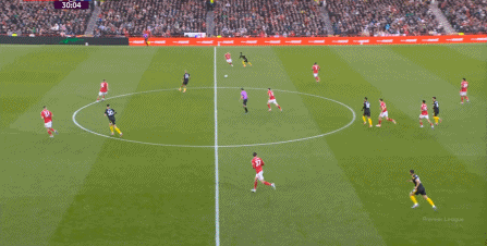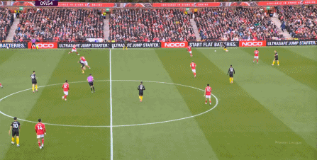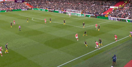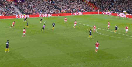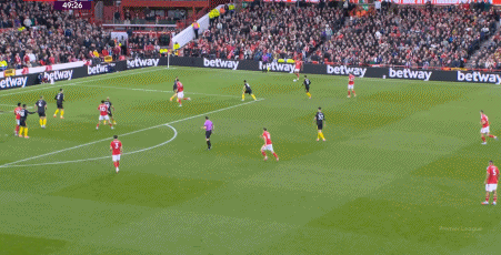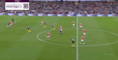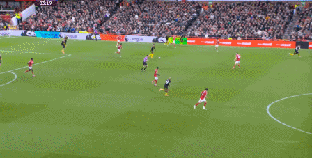 這個時候的曼聯(lián)選擇強攻,除了這腳通過卡塞米羅的前插,為布魯諾拉出遠射中柱的空間之外: