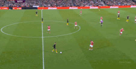 但到了曼聯(lián)這里,情況其實出現(xiàn)了逆轉(zhuǎn),“阿扎爾”在更多防守,更多回撤拿球: