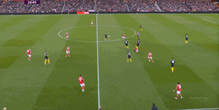 在這個時候,球隊?wèi)?yīng)該從三后衛(wèi)體系當(dāng)中轉(zhuǎn)換到四后衛(wèi)的思路,也就是中衛(wèi)變?yōu)樽笾行l(wèi),翼衛(wèi)變?yōu)檫吅笮l(wèi),需要彼此收緊距離,但曼聯(lián)僅僅領(lǐng)會到邊中衛(wèi)前頂這種簡單的防守思維,涉及到邊中衛(wèi)前頂之后其他位置的聯(lián)動,曼聯(lián)就做不到了。