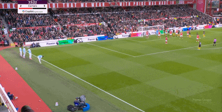 而在這次進攻制造的定位球當(dāng)中,諾丁漢森林就已經(jīng)開始從右側(cè)禁區(qū)角的方向起球,而這恰恰就是曼聯(lián)在下半場連續(xù)丟球的位置: