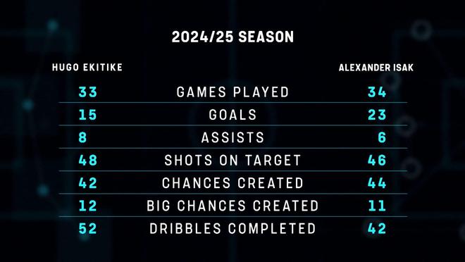 唯一的區(qū)別是,我們這個賽季要踢60場,而他們上賽季各自踢了33和34場聯(lián)賽。除此之外確實(shí)很相似。不過我認(rèn)為他們雖然有相同的特質(zhì),但也有不同的特點(diǎn)。?;倏丝梢蕴咦舐?,而伊薩克更像純粹的九號。伊薩克是那種終結(jié)型中鋒,而埃基蒂克更喜歡拉到左側(cè)接應(yīng)。